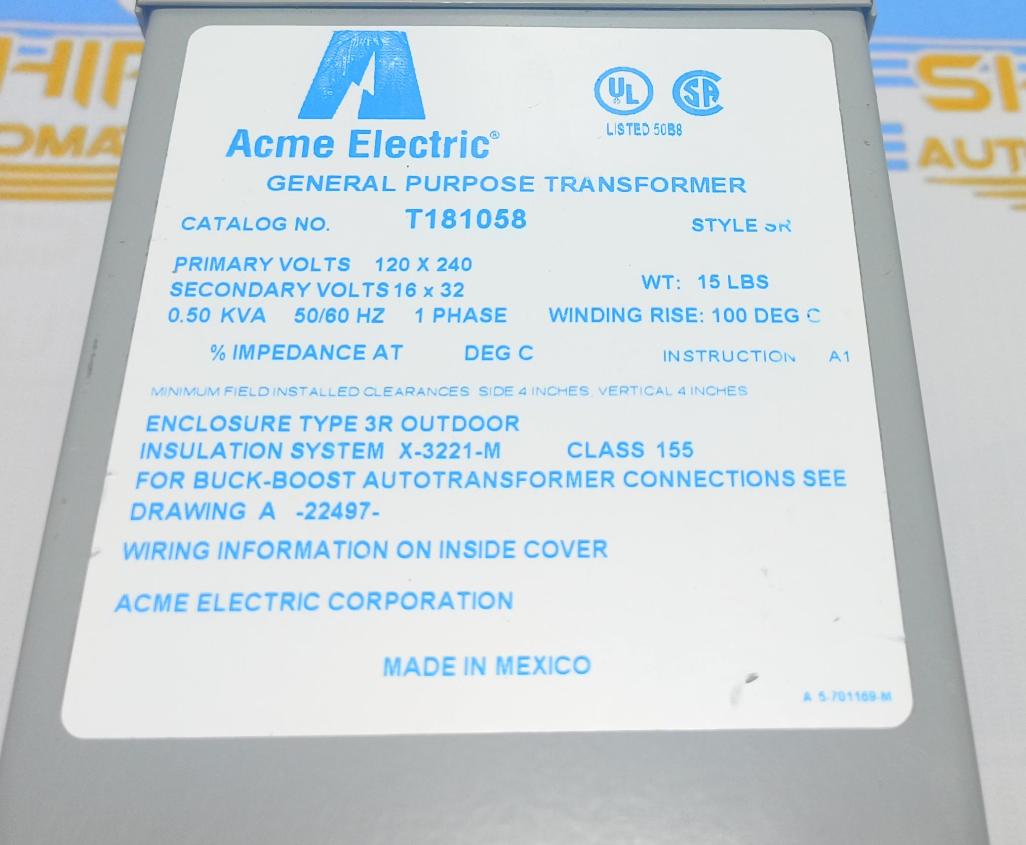 ECME ELECTRIC CORPORATION GENERAL PURPOSE TRANSFORMER T181058 STYLE SR - MAXICO