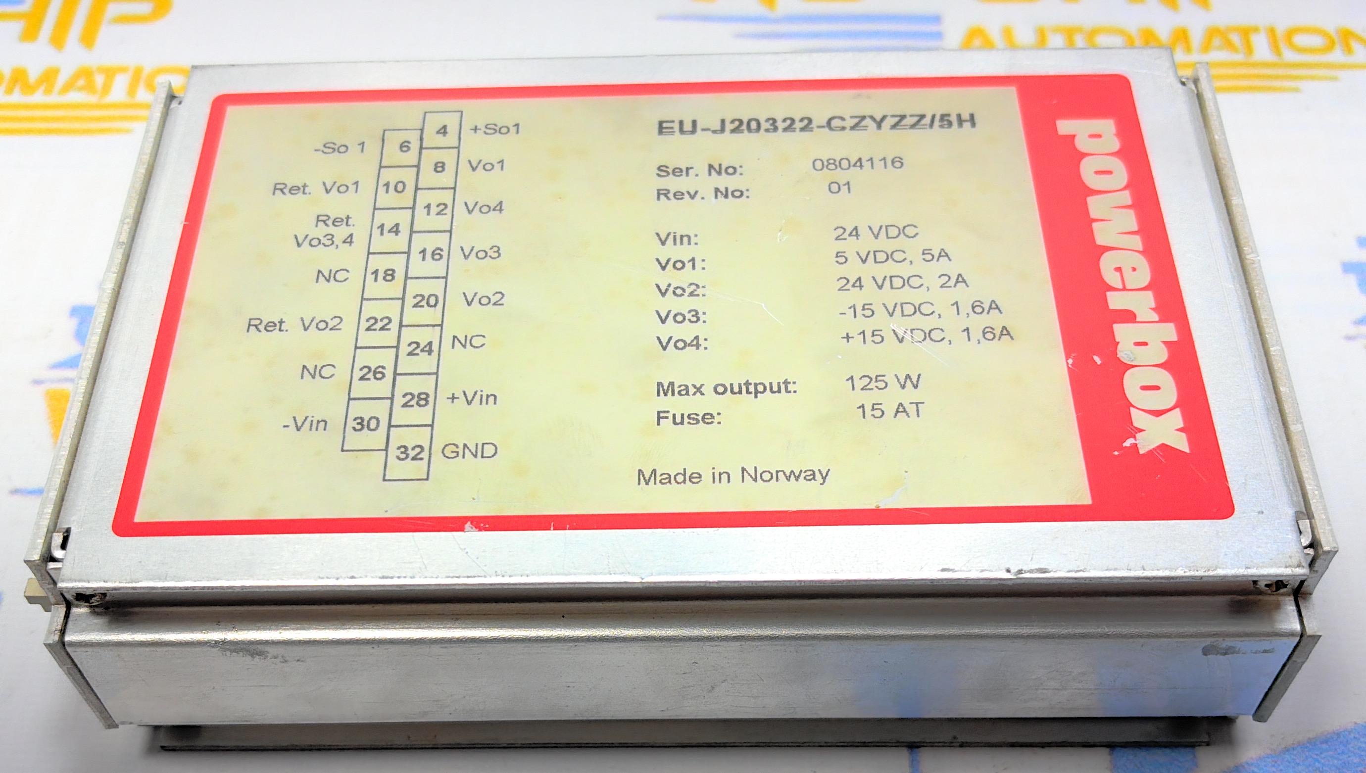 POWERBOX EU-J20322-CZYZZ/5H REV-01 24VDC MAX OUTPUT 125W - Ser No: 0804116 MADE IN NORWAY