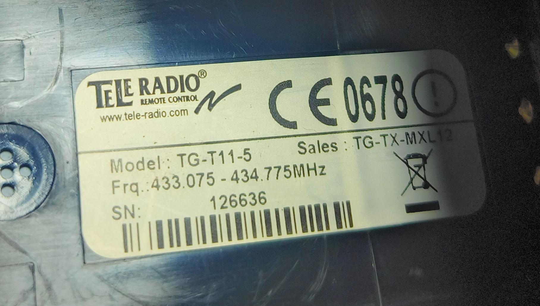 TELE REDIO REMOTE CONTROL MODEL : TG - T11 - 5 SN: 126636