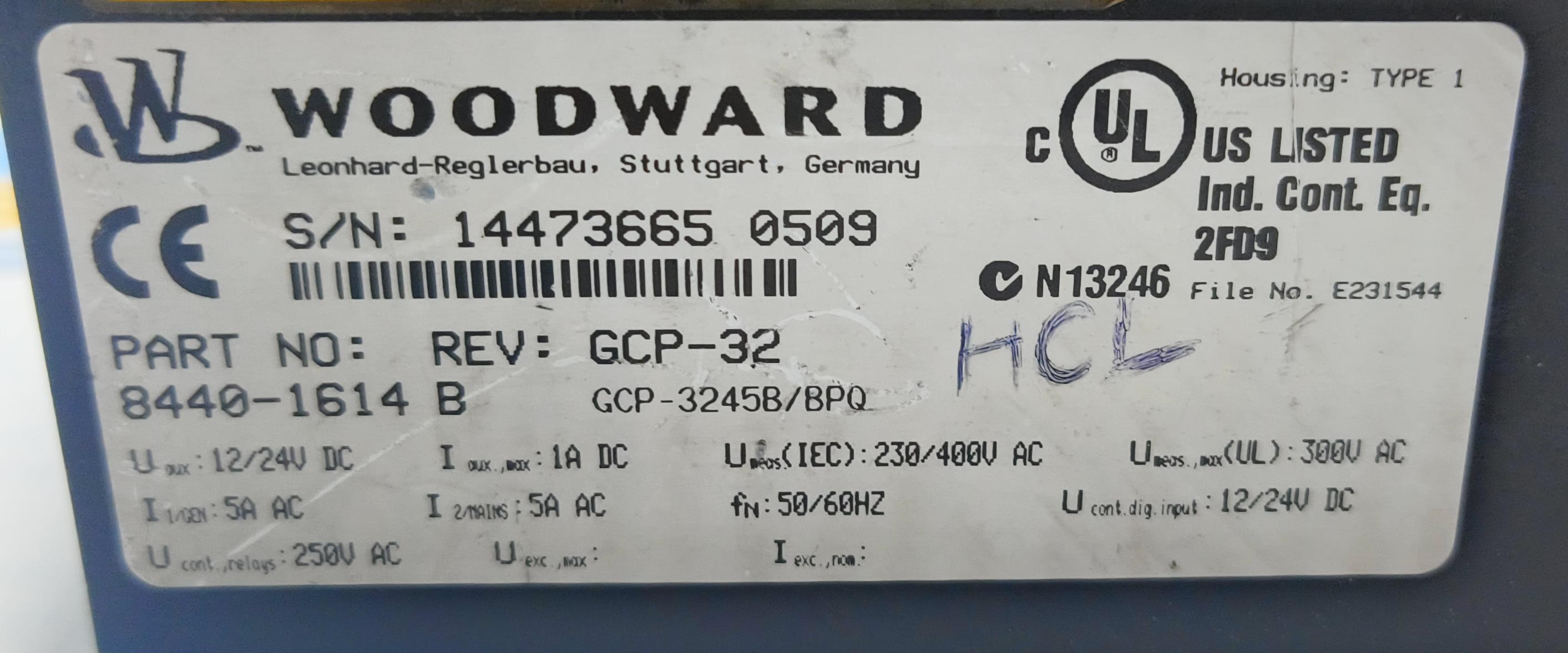 WOODWARD GENSET CONTROL PACKAGE GCP-30 PART NO : 8440-1614 B S/N 14473665 0509
